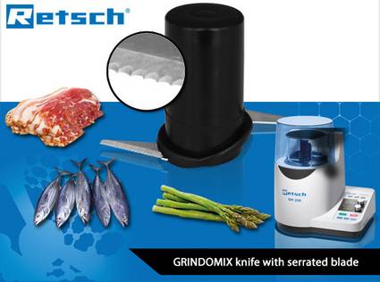 Sie kennen es sicher auch: die Probenvorbereitung von zähen und faserigen Lebensmitteln kann die Geduld des Anwenders hin und wieder auf die Probe stellen. Speziell für solche Fälle bietet RETSCH nun das Wellenschliffmesser für die Messermühlen GRINDOMIX GM 200 und GM 300 an.